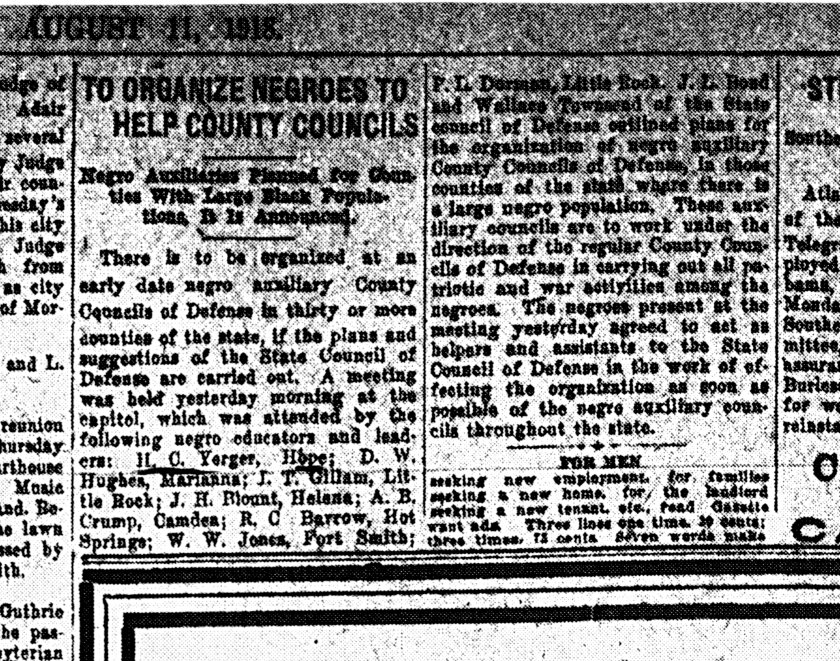 The Arkansas Colored Auxiliary Council: Black Activism during World War I, 1917-1918
