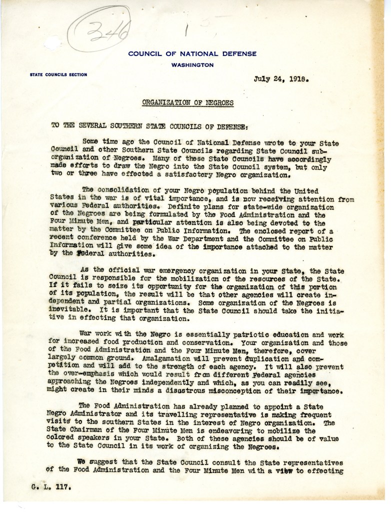 Correspondence from the National Association for the Advancement of Colored People, 1918 October 10