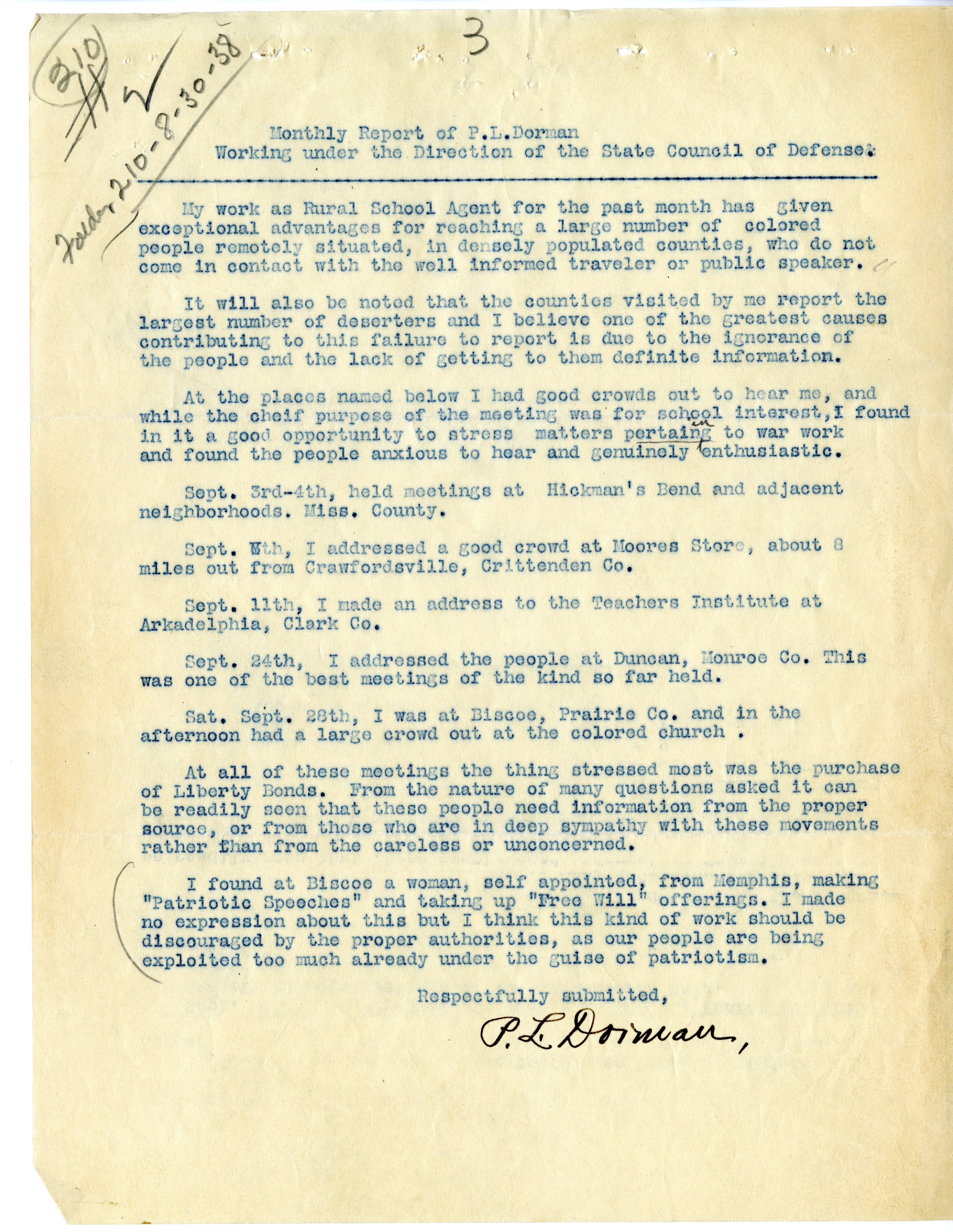 Correspondence from Judge G.B. Ewing to Arkansas State Council of Defense, 1918 October 23